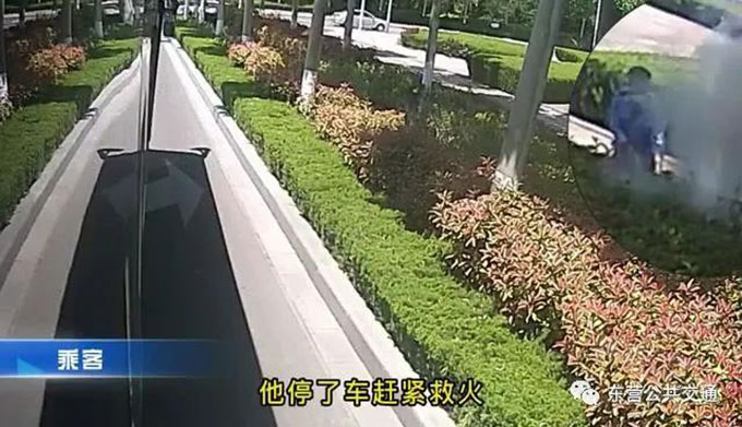 5月16日中午一點多,東營公交客服熱線968166的工作人員接到一乘客電話,對方稱要給自己乘坐的這趟公交車的司機點贊,“多虧他,不然火著大了,就麻煩了”。原來,當天,在公交車運行至東一路英華園學校附近時,駕駛員發現路邊綠化帶冒出滾滾濃煙,當機立斷,將車輛靠邊安全停放后,拿起駕駛座旁邊的一個滅火器就跑了下去;在第一個滅火器全部用完后,火勢暫時被有效控制,他擔心有復燃風險,又再次回到車上,取下另一個滅火器繼續滅火。