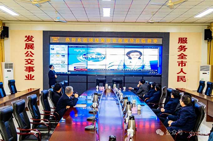 2024年1月26日上午,市城建集團黨委書記、董事長胥高遠帶領集團高級咨詢、外部董事到市公交集團觀摩調研。公司黨委書記趙龍同志,黨委委員、副經理孫紅光同志陪同。