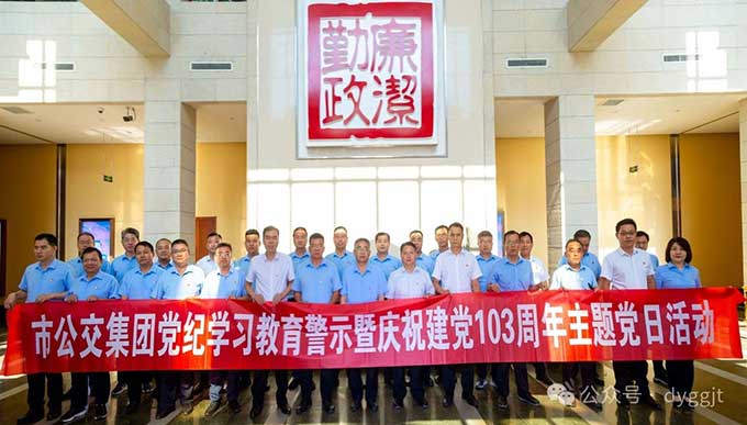 為慶祝建黨103周年,縱深推進(jìn)全面從嚴(yán)治黨,努力推動(dòng)黨紀(jì)學(xué)習(xí)教育走深走實(shí),教育引導(dǎo)廣大黨員干部堅(jiān)定理想信念,牢記使命宗旨,筑牢紀(jì)法底線,2024年6月27日下午,市公交集團(tuán)組織黨員干部赴市廉政教育中心開(kāi)展黨紀(jì)學(xué)習(xí)教育現(xiàn)場(chǎng)警示暨慶祝建黨103周年主題黨日活動(dòng),集團(tuán)公司黨委成員、各支部書(shū)記及各部門(mén)單位主要負(fù)責(zé)同志參加。